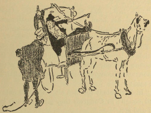My first horse was another man’s. On the site of Hammerstein’s Theatre of Varieties used to be a stable, whose proprietor was so kind to me, when I was a New York schoolboy, that I used to spend much of my spare time there. He owned a little black mare which he allowed me to ride in Central Park. Her age and pedigree[357] were unknown; some men said she had been in the Civil War; others dated her back to the Mexican War; she ought to have been in both for she was full of fighting blood, indicated by defiant waves of a little flag-like tail. I could not possibly fall off, for her back sloped into a natural cradle; her hips and shoulders would have made fine vantage points for wireless telegraphy. Her manner was distinguished by severe dignity, and her walk was slow and stately; nothing could urge her out of it, but occasionally of her own free will she would break into a decorous trot for two or three minutes. She was a capital illustration of Milton’s idea of the female will:—