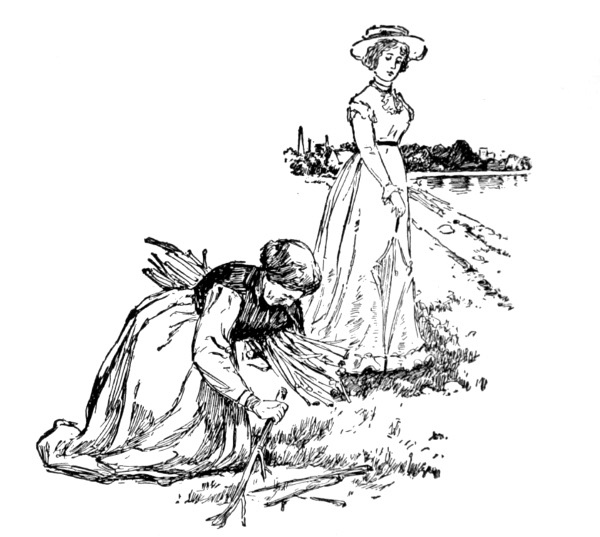 "It is very sad," she continued, in the excellent French spoken by the peasants of the Loiret department. "He comes by the river and declaims. He speaks of Linkum and Wash'ton. I watch from my cottage, for my [pg 17] daughter Mathilde is housemaid at Madame Greyshield's, and I hear her talk. Monsieur le colonel Greyshield is a grand officer in America; but his wife, she is proud. She brings her children to France to study. She leaves the poor man lonely. This boy is most heartbroke. Mathilde says he talks of his dear country in his sleep, then he rises early to study the foreign languages, so he can more quickly go to his home. But he is sick, his hand trembles. Mathilde thinks he is going to die. I say, 'Mathilde, talk to madame,' but she is afraid, for madame has a will as strong as this stout stick. It will never break. It must be burnt. Perhaps mademoiselle will talk."