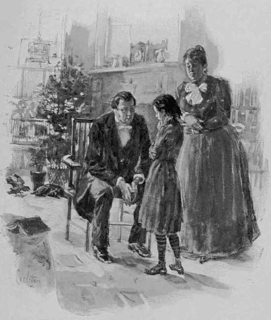 "Land! ain't they sweet!" muttered a little girl, who was herself almost as elfish and impish as a crow. She stood with clasped hands in the midst [12] of a spruce thicket. Her face was upturned to the hot sun set in the hard blue of the sky. The sun burned her, the wind chilled her, but she remained motionless, except when the sound of sleigh-bells was heard. Then she peered eagerly out into the road.