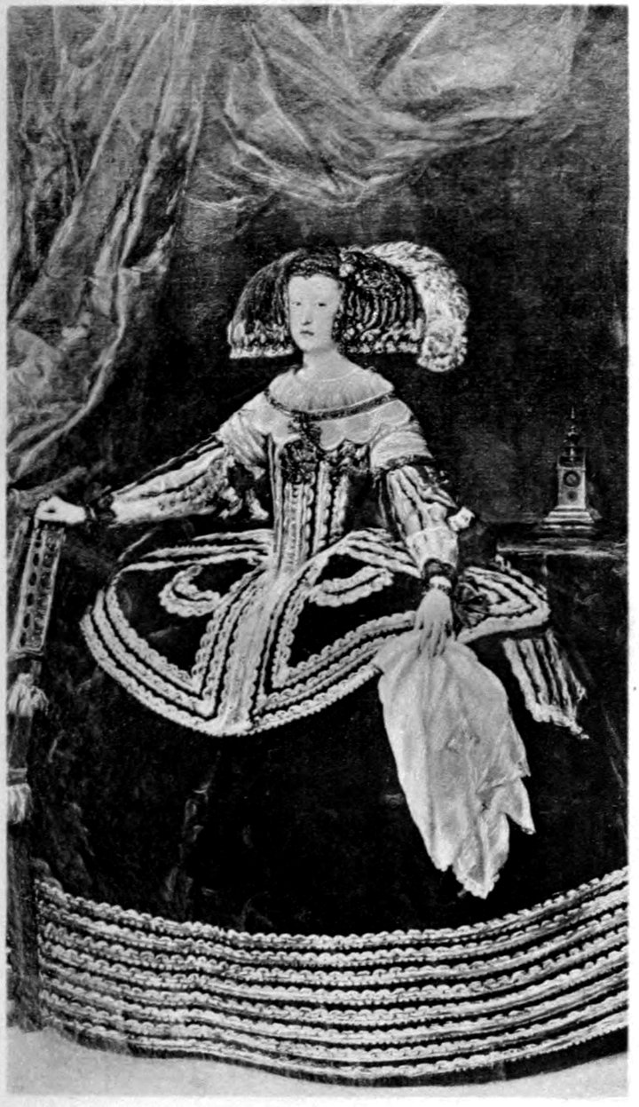 300. It was a hooped skirt of peculiar shape, fashionable in Spain, called a guardainfante, of which a specimen may be seen in the portrait of Mariana in the present volume.