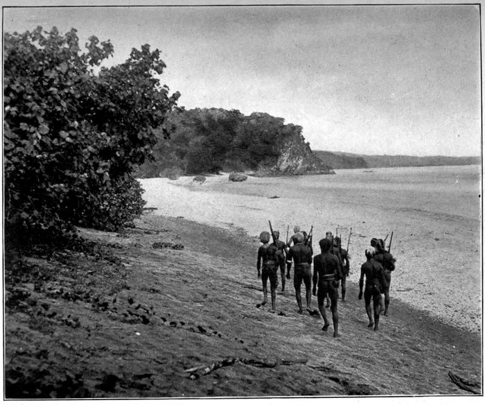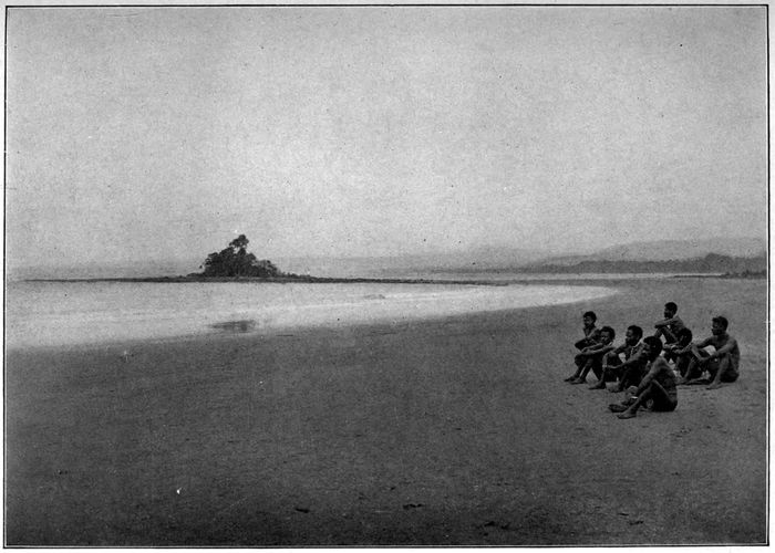 We settled down near a stream and I took pictures as long as the light lasted. That night, our little friends camped close by, and the next day, when we set out for the beach, they followed us. We showed them everything we had in our trunks. They were as pleased as children, and, when I allowed the old chief to shoot my big automatic revolver, he fairly danced with excitement.