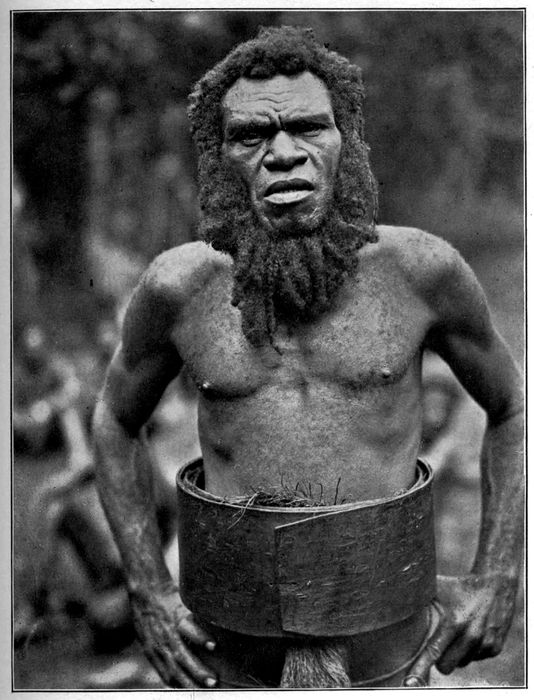 A recruiter who had been for years in the New Hebrides enlisting blacks for service in the Solomons described Malekula to me in detail. It was a large island, as my map showed me, shaped roughly like an hour-glass, about sixty miles long and about ten 9miles across in the middle and thirty-five or so at the ends. He said that there were supposed to be about forty thousand savages on the island, most of them hidden away in the bush. The northern part of the island was shared between the Big Numbers and the Small Numbers people, who took their names from the nambas, the garment—if it could be called a garment—worn by the men. In the case of the Small Numbers, said my informant, it was a twisted leaf. In the case of the Big Numbers, it was a bunch of dried pandanus fiber. The recruiter said that the central part of the island was supposed to be inhabited by a race of nomads, though he himself had never seen any one who had come in contact with them. In the southern region lived a long-headed people, with skulls curiously deformed by binding in infancy.