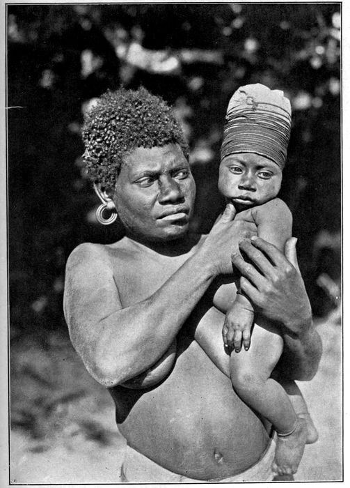 159Toward evening the women of the village appeared with loads of firewood and fruits and vegetables. On top of nearly every load was perched a child or a young baby, its head fitted snugly with a basket to make the skull grow in the way in which, according to Tomman ideals of beauty, it should go. The women of Tomman we found a trifle more independent than those of other islands of the New Hebrides. Of course, their upper front teeth were missing—knocked out by their husbands as part of the marriage ceremony. The gap was the Tomman substitute for a wedding-ring. But on Tomman, as elsewhere in the New Hebrides, wives are slaves. Since a good wife is expensive, costing from twenty to forty pigs, and the supply is limited, most of the available women are cornered by the rich. A young man with little property is lucky if he can afford one wife. He looks forward to the day when he will inherit his father’s women. Then he will have perhaps a dozen willing hands to work for him. He will give a great feast and, if he kills enough pigs, he will be made a chief.