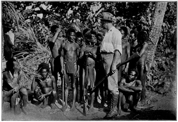 The savages of the New Hebrides probably owe their immunity from civilization to an accident of government. For many years the ownership of the islands was disputed. Both British and French laid claim to them. Neither would relinquish hold; so finally, they arranged to administer the islands jointly until a settlement should be made. That settlement has been pending for years. Meanwhile, both governments have been marking time. Each party is slow to take action for fear of infringing on the rights—or of working for the benefit—of the other. Each maintains but a small armed force. The entire protection of the group consists of about sixty or seventy police boys, backed up by the gunboats which make occasional tours of the group. It is easy to understand that this is not an adequate civilizing force for a part of the world where civilizing is generally done at the point of a rifle, and that the savages of the more inaccessible parts of the group are as unsubdued as they were in the days of the early explorers.