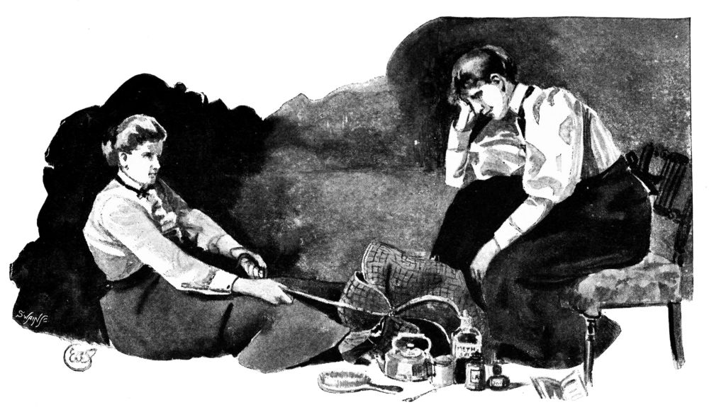 “Perhaps you would rather step to the drawing-room,” she said, hesitatingly; and while she spoke the chorus of “The Man that broke the Bank at Monte Carlo” broke forth from the hilarious conversation in the coffee-room, “we have the—a—the circus ladies and gentlemen in there.{139}”