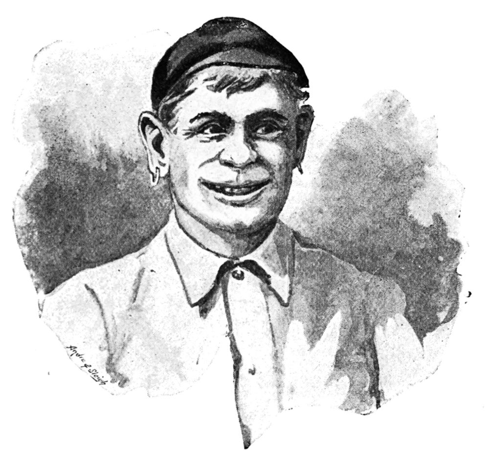 From the eye that Miss O’Flannigan cast upon me I knew that her mind was, like mine, occupied with a vision of the Yeomanry mounted, like cyclists, on “dwarf-safeties,” and we ventured to ask whether the St Bernard, whose eyes gleamed from the dark corner of the shop where he lay, pantingly protruding a tongue like a giant slice of ham, had been ridden during the training. The jest had a high success, and a suetty giggle{7} from somewhere near the open door of the parlour apprised us that this gem of Irish humour was not lost on the apprentice.