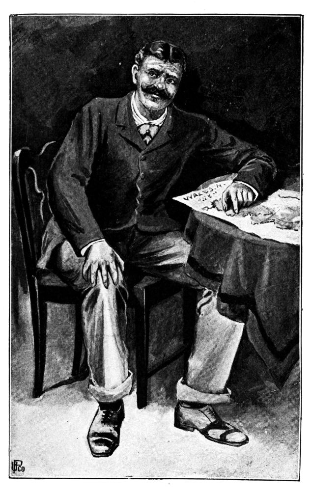 A scarlet face loomed in the entry of the hotel as we slid stiffly from our saddles, and afterwards, in the sitting-room, we found it burning like a red lamp at the central table. We fell into converse with its owner, while from a dark corner of the room a sickly jingle apprised us that some one was playing “The Man that broke the Bank at Monte Carlo.”