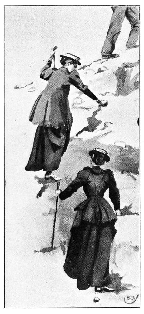 It was late that evening before the hold-alls arrived from Llanberis, and therefore our toilettes{153} for table-d’hôte were, as the fashion articles say, dainty confections, composed of a damp habit-skirt, a mackintosh, shirts hot from the hotel laundry, and the severest of the plaid-shawls. It is scarcely to be wondered at that the sole other occupant of the hotel, a godly young amateur photographer, should have awaited us somewhat nervously as we swept through the long room towards a table laid for three, and should have carved the soup and fish with a trembling hand. With the chicken, however, the photographer had almost ceased to look round for our keeper, and a conversation about Thornton Pickard shutters and time-exposures was beginning to thrive at the hands of Miss O’Flannigan, who affects some acquaintance with these things. The evening finished with all the domesticity imparted by a fire in the drawing-room and a display of negatives, Kodaks, shoulder-straps, and other ingredients of a photographic walking tour. We felt that we were a godsend to this good and lonely youth, and parted from him with every hope that on the morrow he would ask{154} to be permitted the privilege of photographing the Tommies and the expedition generally. It was therefore crushing to find on the morrow that he had unexpectedly fled at daybreak, with all his worldly possessions. He did not know it, but he was obeying the decree that, Claudian-like, we should blight the fortunes of every hotel we stayed at, and reign in malign monopoly of coffee-room and table-d’hôte.{155}