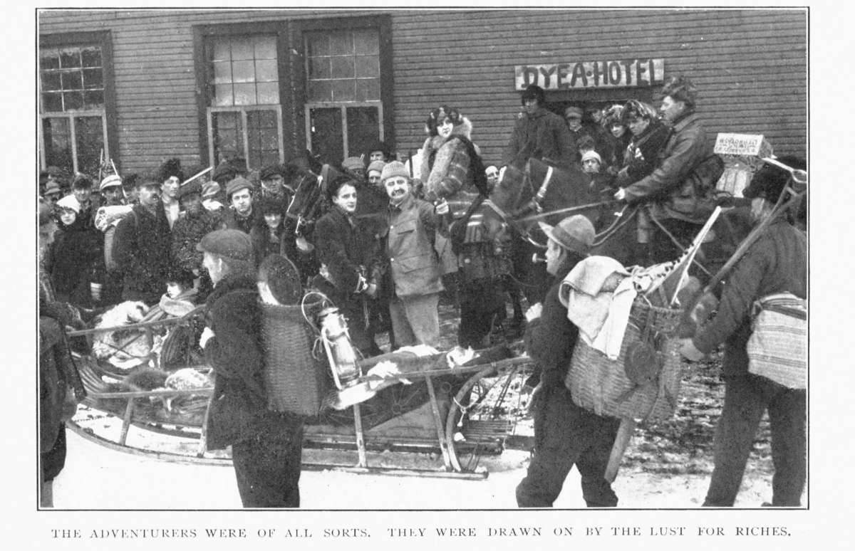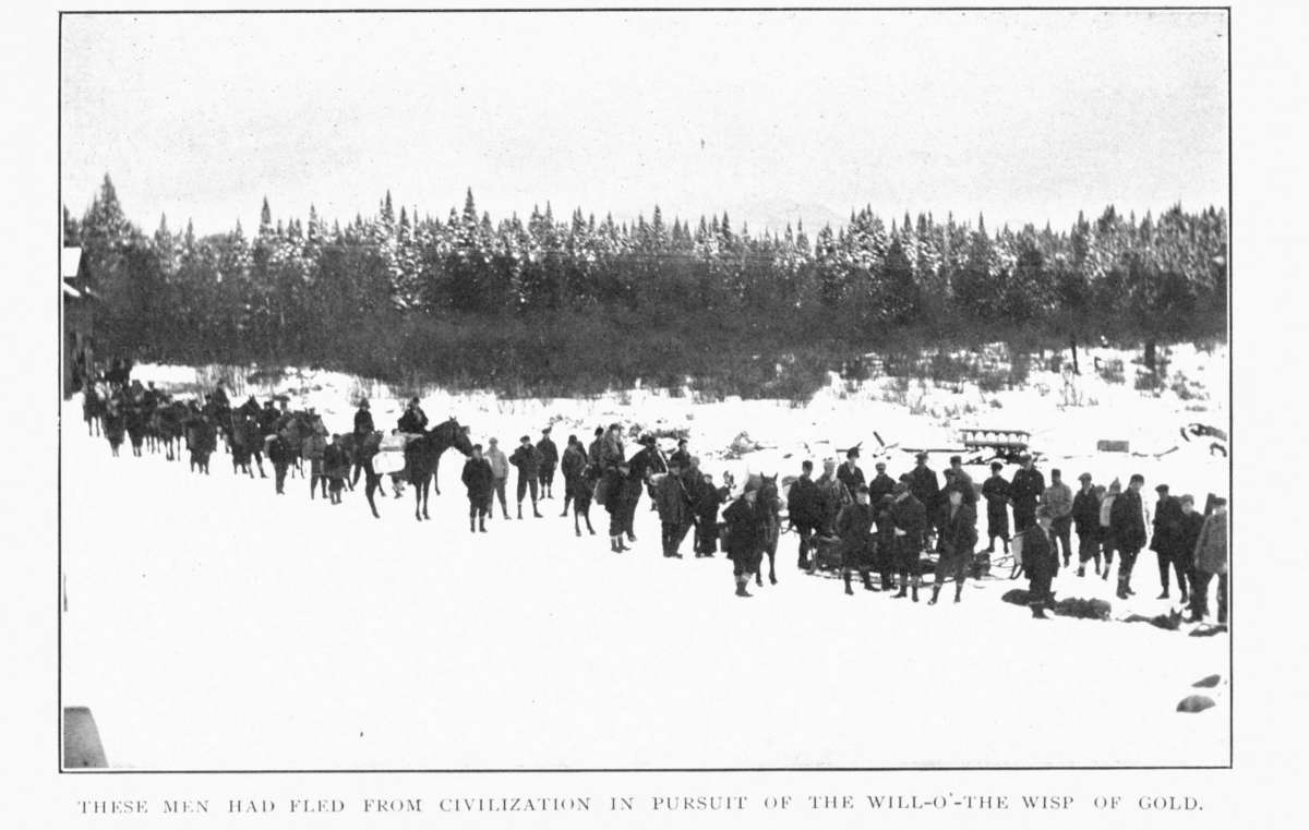 The book relates the adventures of a party on its overland pilgrimage, and the birth and growth of the absorbing love of two strong men for a charming heroine.