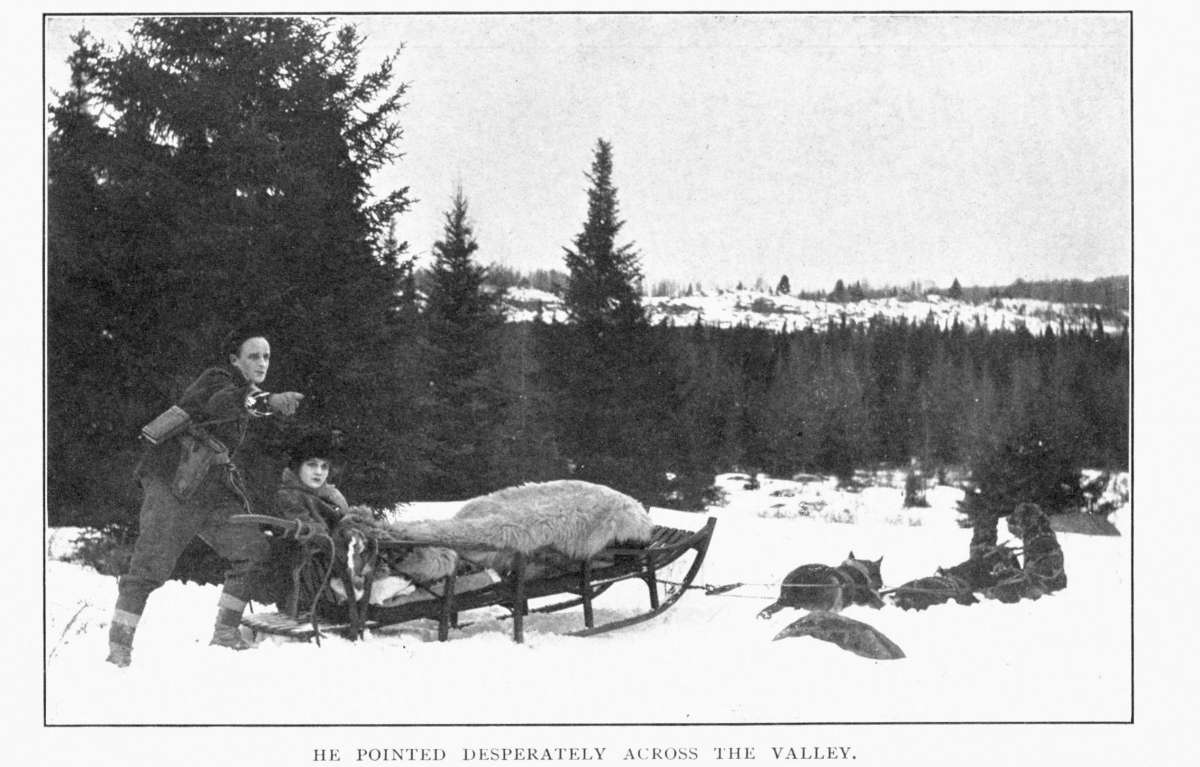 On the crest of the hill, Jim halted the dogs for a brief rest. He pointed out over the broad-sweeping whiteness of the valley toward the southern horizon.