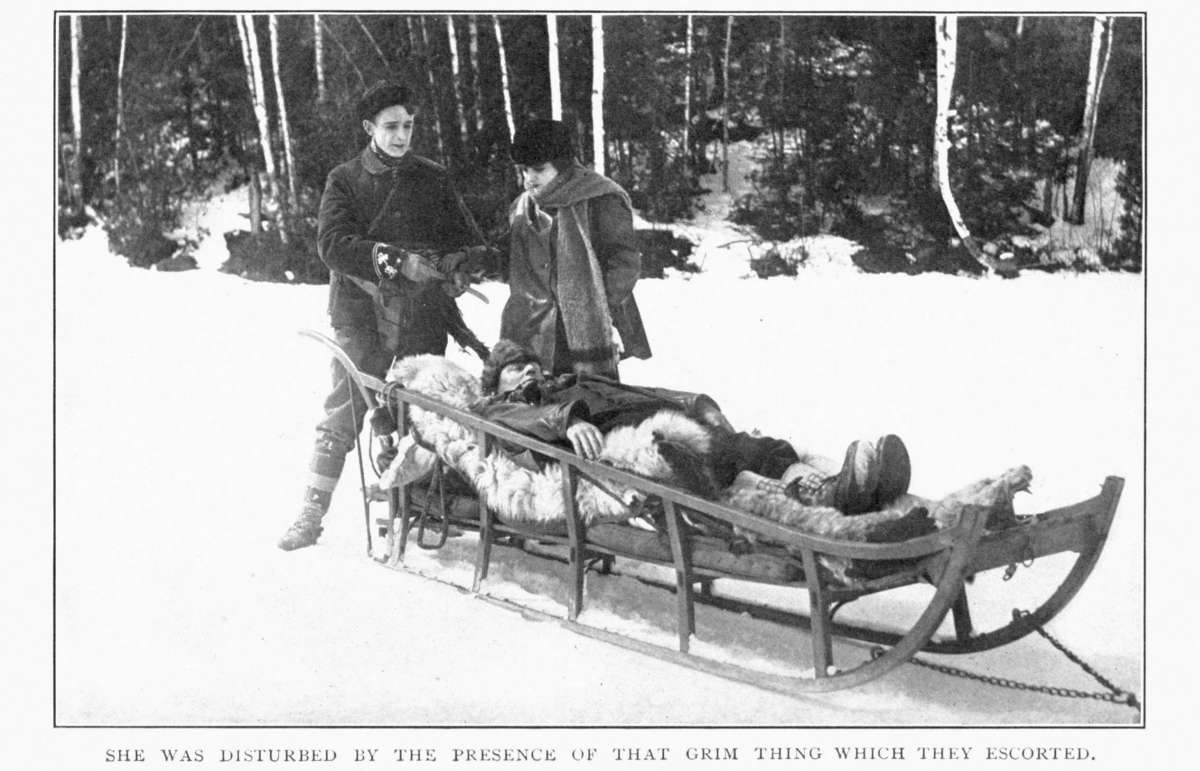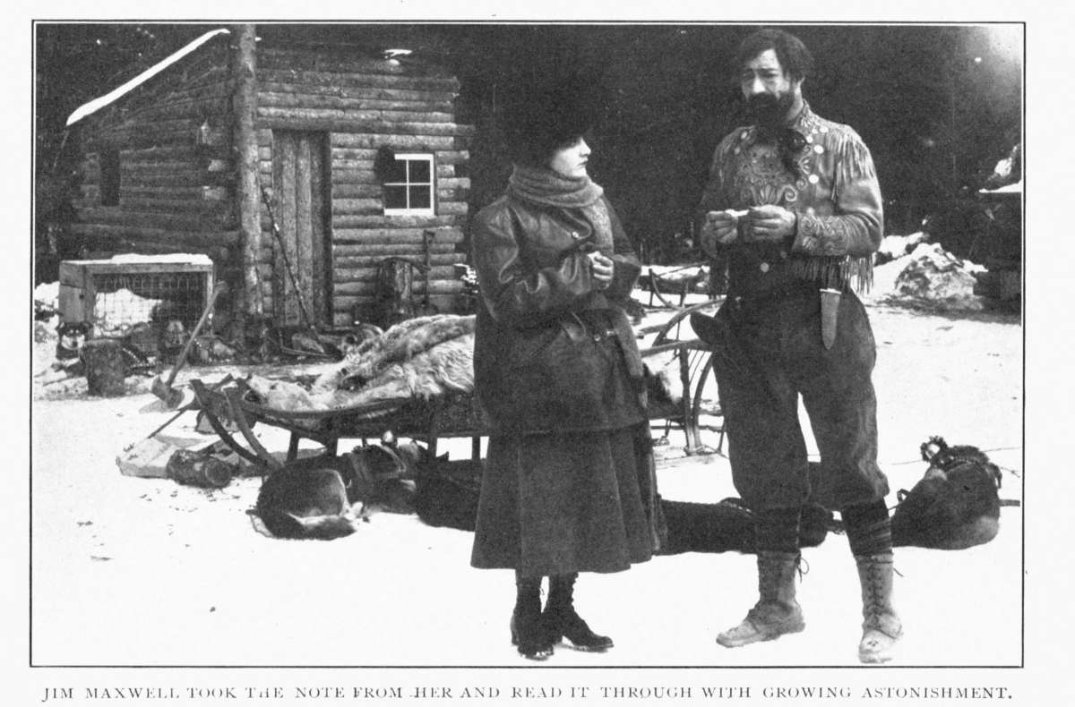The going was slow; whereat Jim Maxwell fretted hugely. But there was no other flaw in his perfect happiness, or in that of the woman who sat with her face turned so that she might look up often into the bearded one of the man as he ran behind the sled. Both were content. Already, yesterday was remote, with all its loneliness and grief. This was a new day, in a new life, the beginning of a happiness that would abide. The sorrows they had known had cleansed and strengthened them, and made them ready for a finer joy in their love. They spoke little together, for there was small need of words between them.[317] Neither needed to tell the other of the torment endured during the years of separation. Neither wished to remember the evil that was gone. Why should they mourn when the cup of gladness was brimming at their lips? The past was dead. The scars from the old wounds would remain always. But they were hidden, and the wounds were healed by love's magic, and would ache no more. They set their faces to the future, where life shone radiant.