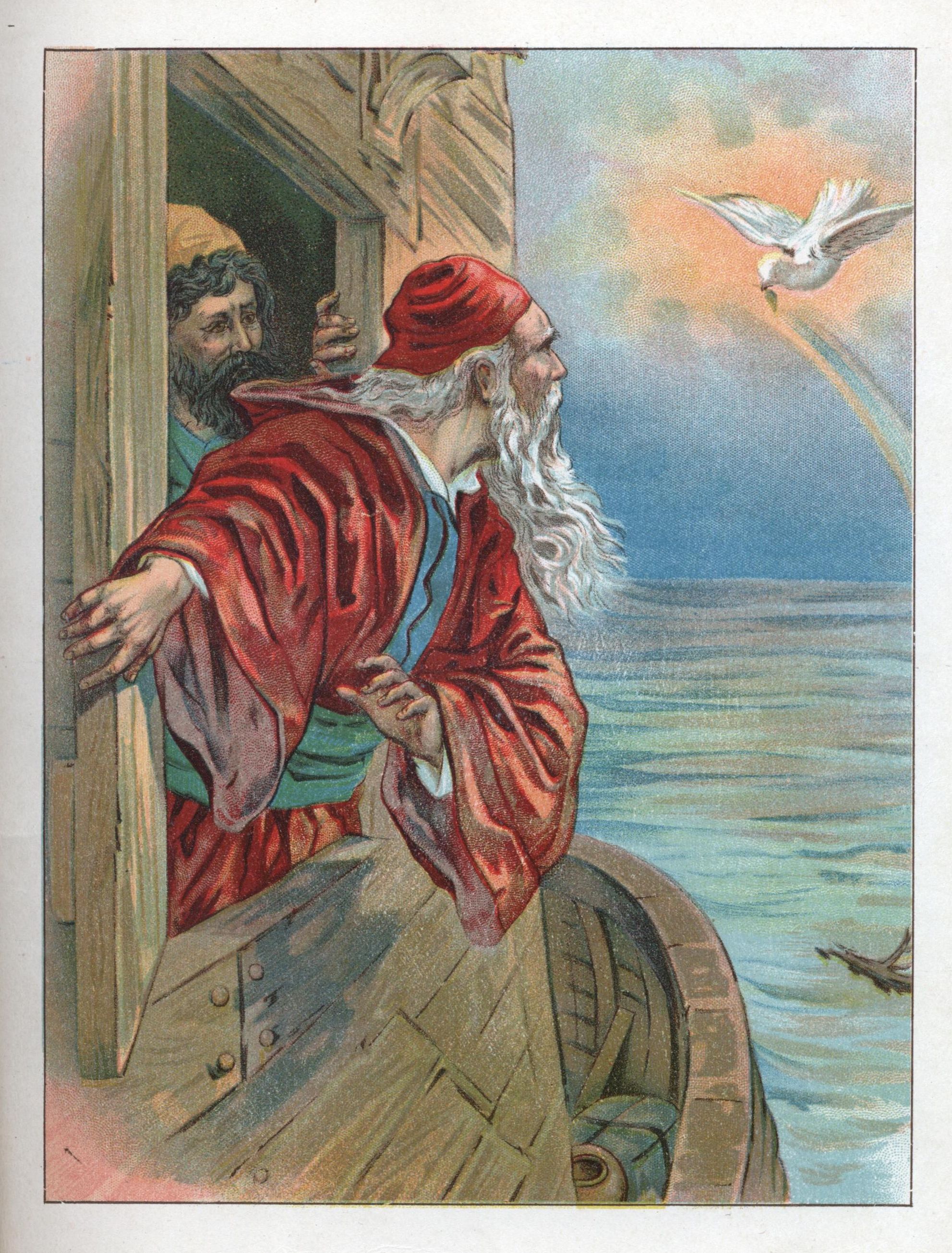 Dove returns to ark with an olive leaf (color plate)