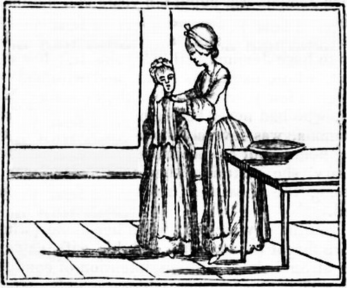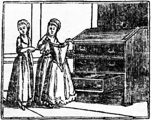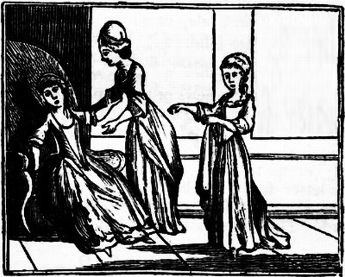 Jemima stood by unnoticed in the general confusion, and Miss Piner was undressed with the utmost expedition, and sincerely rejoiced to be rid of the incumbrance of that finery which in another situation would have excited her envy. Our little Heroine, whose sense as well as serenity was uncommon, reflected, that gay clothes must certainly in themselves be of little value, since they could not prevent the approach of disease, or suspend for a moment the attacks of pain; that the pleasure they bestowed, as it was ill-founded, was likewise extremely transient, as Sally's passion on her disappointment[Pg 29] was sufficient to prove; since she was now mortified in proportion as she had before been elated. And though her sister's reflexions were, for the present, suspended by the violence of pain, yet her vexation, when she was restored to the ability of contemplating the state of her clothes, would be equally poignant, and without remedy.