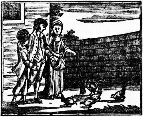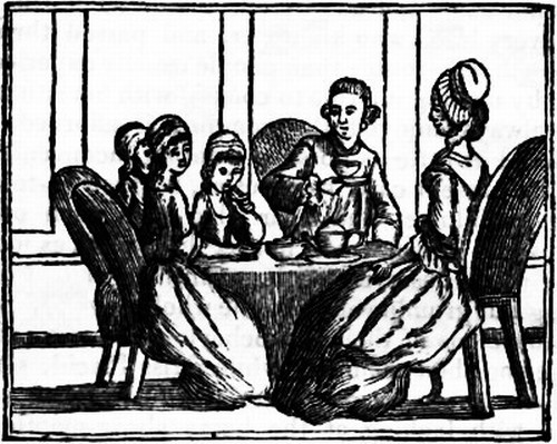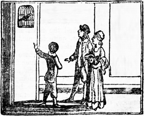Mrs. Placid, though in some measure recovered from her late indisposition, still continued extremely weak. The coach was therefore ordered to attend them early; and taking their leave of the company, they all returned home; when the young folk, after wishing them good-night, retired to-bed. The next morning at breakfast, Miss Piner began the conversation,[Pg 50] by showing how awkwardly Mr. Speedmore had behaved, and what a cross gentleman she thought Miss Myra's uncle was.—I was so glad when the snuff made him sneeze and cough! said Miss Sally.—And, I am sure, he deserved it, said William; for last Sunday when we were coming home from church, he stood at the little gate in the church-yard with fat Mr. Stopway, and would not let Tom Gibbons pass; but took him by the shoulder, and shook him for being so rude, as to push his way between two gentlemen. And is that the cause, returned his father, that you rejoice so heartily at the inconvenience which he suffered? Why, my dear, you take Tom's affront sadly to heart; but so far from thinking it ill-natured of him to tell such a poor boy of a fault, I dare say, he intended it as a kind admonition; for Tom has not any body to instruct him in those common attentions of civility, which are necessary to recommend even a day-labourer to regard. And if Mr. Speedmore[Pg 51] had the advantage of a friend to hint to him the use of politeness, it might have saved him from the censure of your cousin, who seems to have been quite astonished at the rusticity of his manners. That young man, continued he, has received no advantage from his education; his father having neglected to improve him in any thing but the sports of the field, in which his own time is entirely engaged, and to which he has brought up his son; so that you ought rather to compassionate his misfortune, than ridicule his defects; and from observing how unpleasing such a roughness of manners will make a person of a good disposition, learn to bestow greater assiduity in the cultivation of your own graces. But I am too apt to forget, Sir, said Charles, that though I always intend to mind your advice, and think it very just and reasonable at the time you are speaking to me, yet, when I pass by a gentleman, I frequently do not pull off my hat till he is out of sight and then I recollect it would have been more polite so to have done; and thus in other cases, I do not remember to attend when any body in company is addressing themselves to me; because I am busy, either in looking out of the window, or playing with something that is near me, and so they are obliged to speak several times before I hear they are talking to me. But you should take pains not to forget any thing that you are taught, replied Mr. Placid, or otherwise there will be no use in my taking the trouble to instruct you. I will tell you a story, Charles.