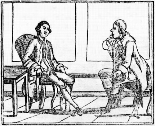 In consequence of this resolution, she addressed herself particularly to him, and inquired, whether he had been to a camp, which was at some little distance from Smiledale? and whether he had yet learned, or intended to learn, the manual exercise? To this question, as he was very inattentive, he at first returned no answer; and upon its being repeated, he misunderstood her meaning, and replied—No, Miss! I have seen no Emanuel, nor do I know any such person.—This misapprehension afforded great entertainment to the younger part of the company, who laughed for some time at his mistake; till Mr. Placid inquired into the cause, and, with great good-nature, blamed them for the indulgence of their mirth at Mr. Speedmore's expense; and Miss Wagstaff, with a smile at Miss Myra, added, That the laugh was turned since the earwig had escaped. She blushed at the consciousness which she felt at the reproof, and giving her friend a tap on the shoulder, enjoined her to be silent, declaring, she would not again speak to the young man, though he should gnaw his stick down to the ferrel.