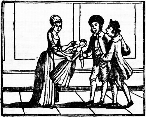 Jemima thanked her mamma for her indulgent promise, and taking up her faceless child, carried it with her up stairs, where she met her brothers; and with a sad countenance held it up to their view. They immediately desired to be informed what she had done with the face, and were much grieved at the relation of its misfortune.