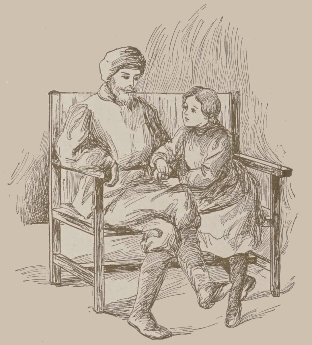 “Softly, softly, little one,” answered he, smiling. “You forget how tired I am with my wanderings.”