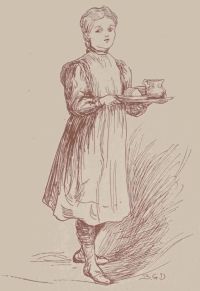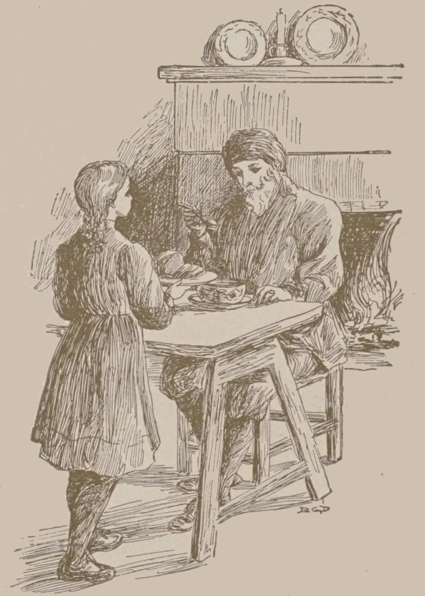 The child said this while she was bustling about, helping the woman to spread the table, and prepare the meal. She trotted about diligently, seeming to know where everything was kept, and making herself quite at home.