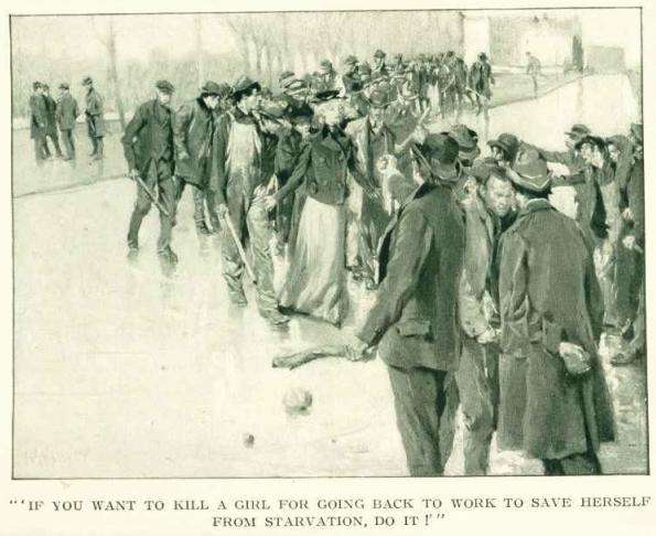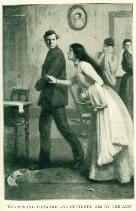 Eva jumped up with a fierce gesture, ran to the stove, and crammed the paper in. “There!” said she; “I wish I could serve all the papers in the country the same way. I do, and I'd like to put all the editors in after 'em. I'd like to put 'em in the stove with their own papers for kindlin's.” Suddenly Eva turned with a swish of skirts, and was out of the room and pounding up-stairs, shaking the little house with every step. When she returned she bore over her arm her best dress—a cherished blue silk, ornate with ribbons and cheap lace. “Where's that pattern?” she asked her sister.