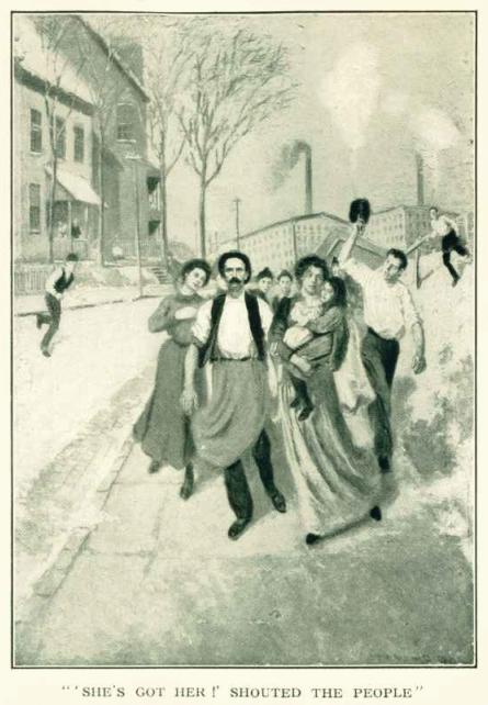 The woman looked at her with surprise and admiration that were fairly passionate. Ellen was a beautiful child, with a face like a white flower. People had always turned to look after her, she was so charming, and had caused her mothers heart to swell with pride. “The way everybody we met has stared after that child to-day!” she would whisper her husband when she brought Ellen home from some little expedition; then the two would look at the little one's face with the one holy vanity of the world. Ellen wore to-night the little white shawl which her father had caught up when he carried her over to her grandmother's. She held it tightly together under her chin with one tiny hand, and her face looked out from between the soft folds with the absolute purity of curve and color of a pearl.