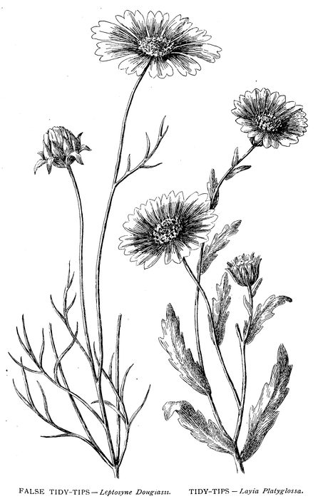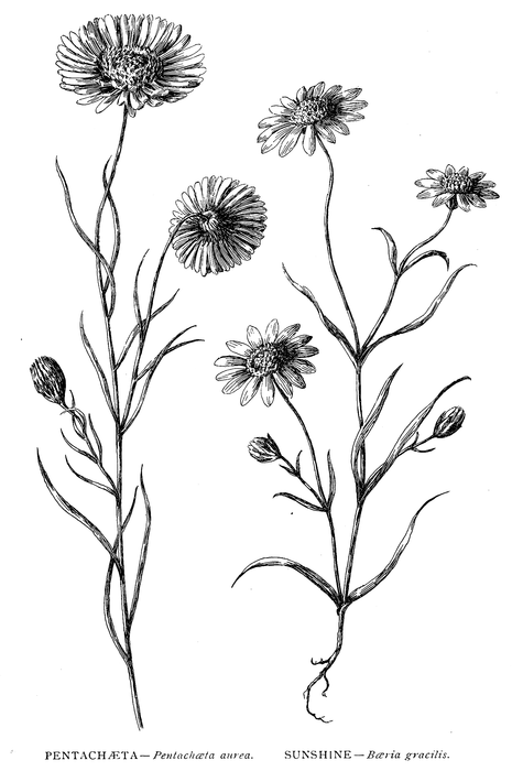 The flower-cuts are all from pen-and-ink drawings by the illustrator; and all but four are from her own original studies from nature. These four, which it was impossible for her to procure, have been adapted by her from other drawings, by the aid of herbarium specimens. They include Aphyllon fasciculatum, Fremontia Californica, Hosackia gracilis, and Brodiæa volubilis. It has been impossible upon so small a page to maintain a uniform relative size in the drawings, for which reason the plant-descriptions in fine print should be consulted for the size.