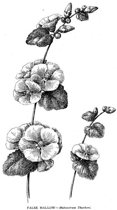 Mrs. Dana has kindly permitted the author to use her plan of arrangement—i.e. of grouping all the white flowers in one section, the yellow in another, the pink in a third, and so on, which, in the absence of a key, greatly facilitates the finding of any given flower. The flowers of each section have been arranged as nearly as possible according to their natural succession in the seasons, with one or two exceptions.