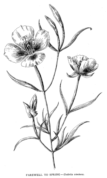In making a choice, she has been guided by the following general principles, and selected, first—the flowers most general in their distribution; second—those remarkable for their beauty of form or color, their interesting structure, history, or economic uses; third—those which are characteristically Californian. At the same time, those which are too insignificant in appearance to attract attention and those too difficult of determination by the non-botanist have been omitted. Flowering plants only have been included.