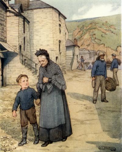 “No, don’t sit down,” she exclaimed, “let me see just what you’ve been up to, young man. I’ll tell your fäather when he comes home, Tommy Tregennis, you tearin’ up the good trousers he goes to sea to get for ee!”