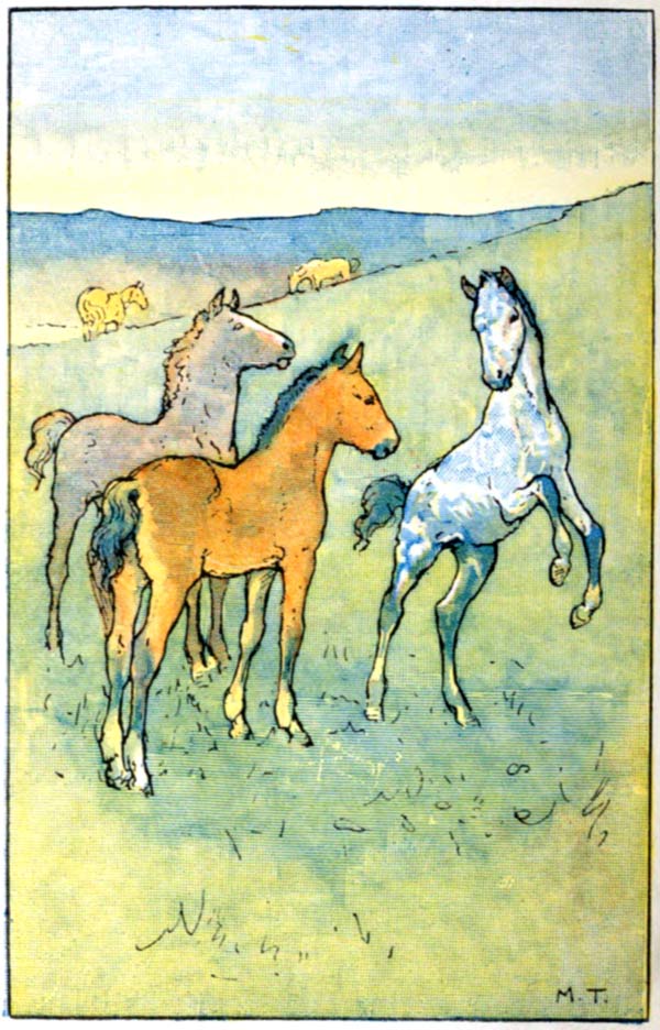 Three little foals you see at play.