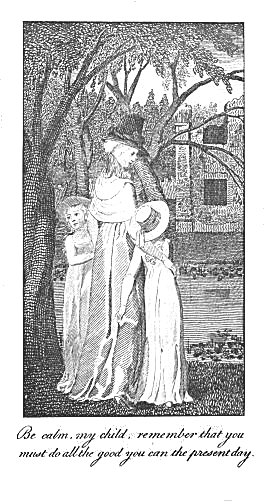 In the afternoon they visited Mrs. Trueman unexpectedly, and found her sitting in the garden playing to her children, who danced on the green sod. She approached to receive them, and laid aside her guitar; but, after some conversation, Mrs. Mason desired her to take it up again, and the girls joined in the request. While she was singing Mary whispered Mrs. Mason, that she would give the world to be able to sing as well. The whisper was not so low but a part of it reached Mrs. Trueman’s ears, who said to her, smiling, my young friend, you value accomplishments much too highly—they may p. 75give grace to virtue—but are nothing without solid worth.—Indeed, I may say more, for any thing like perfection in the arts cannot be attained, where a relish; nay, a delight in what is true and noble is wanting. A superficial observer may be pleased with a picture in which fine colours predominate; and quick movements in music may tickle the ear, though they never reach the heart: but it is the simple strain which affection animates, that we listen to with interest and delight. Mr. Trueman has a taste for the fine arts; and I wish in every thing to be his companion. His conversation has improved my judgment, and the affection an intimate knowledge of his virtues has inspired, increases the love which I feel for the whole human race. He lives retired from the world; to amuse him after the business of the day is over, and my babes asleep, I sing to him. A desire to please, and the pleasure I read in his eyes, give to my music energy and tenderness. When he is ruffled by worldly cares, I try to smooth his wrinkled brow, and think mine a voice of melody, when it has had that effect.