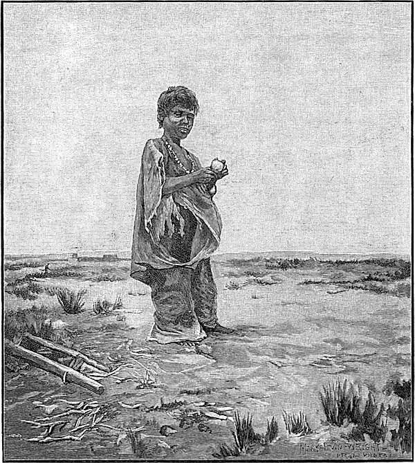 Fetiches of Quer´ränna and of the cougar had been placed under her pillow and a third fetich (a concretion) in her right hand. The father kept a constant vigil, while the anxious mother moved quietly about seeking to relieve the woman by many little attentions. The mental agony of the parents was great, the more intense sufferer being the father, whose devotion to his daughter through her entire illness seemed without precedent. At half past 5 the woman opened her eyes and, raising herself, clasped her father’s neck and made another great effort, and failing, she returned to her pallet, weeping from sheer discouragement. After a time the mother induced her to sit up and take food; a basket of waiavi and a piece of jerked meat which had been broiled over the coals in the same room were placed by the bed, when the mother hastened to another room for the corn-meal gruel she had prepared. (During the time this gruel is boiling it is dipped with a gourd and held high and poured back into the pot; after it is removed from the fire it is passed through this same process for some time. When it is ready to drink it is light and frothy. The mixture is composed of corn meal and water.) The woman ate quite heartily and drank two bowlfuls of the gruel. She had hardly finished her meal when she requested her father to hasten to his seat, and kneeling upon the sand bed she clasped his neck as before; the pain lasted but a minute and she returned to her bed. She was scarcely down, however, when she jumped up and knelt beside the pallet, the child being born by the time the woman’s knees had reached the floor, the birth occurring at half past 6 o’clock. The excitement was great, as the birth at this moment was a surprise. The father was too absorbed in his daughter to think much of the infant, but the old mother was frantic for fear the child would be smothered. The writer was called to hasten and rub the father’s moccasin down the woman’s back; the toe of the moccasin must be downward. This was to hasten the passage of the placenta, which promptly followed. A sheepskin was with difficulty gotten under the child, and finally the skin was pushed forward as the woman raised herself, and the child was taken by the doctress. The woman stood while the doctress raised the child and138 the sister-in-law the placenta four times to her face, as she expressed the wish that the umbilical cord might be severed without danger to the child. She then deliberately removed her belt and woven dress and walked to the bed which had been prepared for her and lay down.