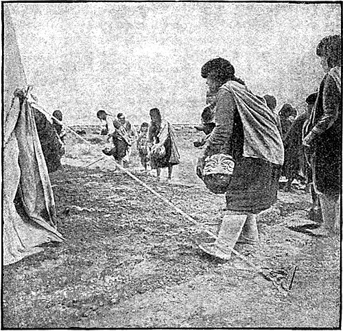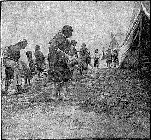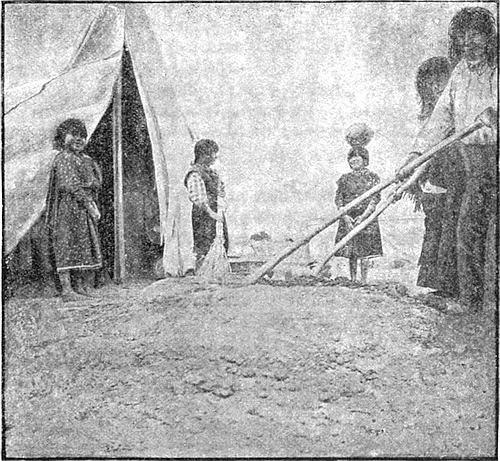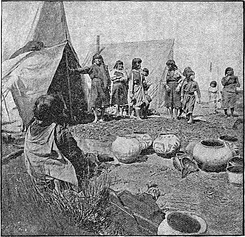 After the first draft of the tea the woman ate a hearty breakfast of tortillas, jerked meat, and corn-meal gruel. Her female relatives and friends called to see her and the baby during the day, and she chatted as merrily as if nothing had happened.