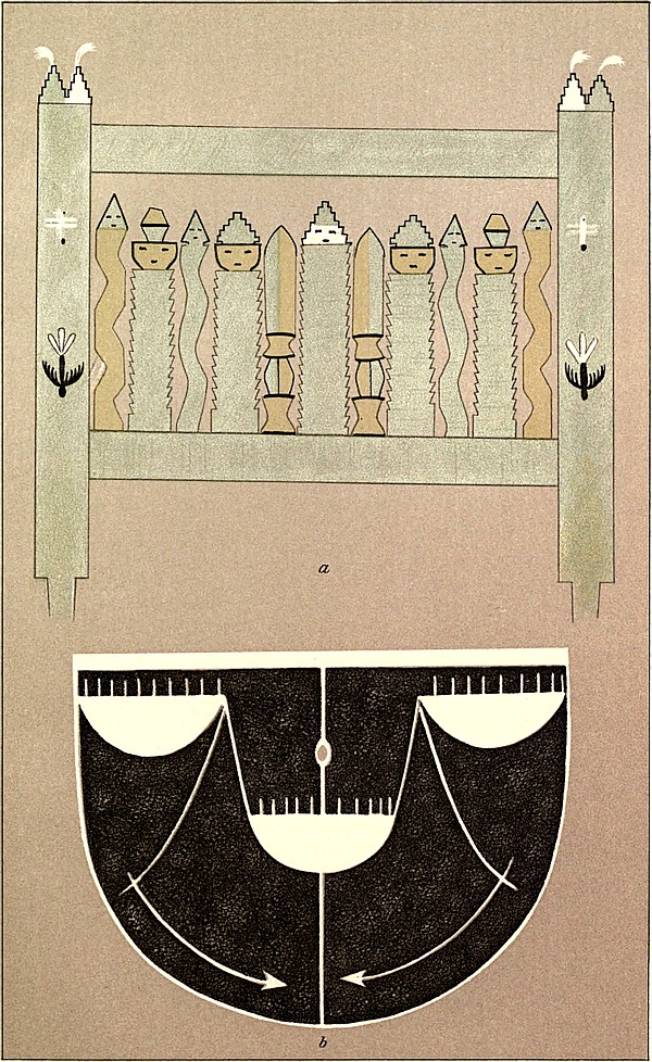 | Altar and sand painting of Giant society (A, altar; B, sand painting) |