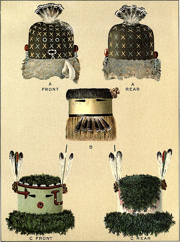 [21] The portraits of the ho´naaites were made in secluded spots in the woods. The hair is not arranged as it is in the ceremonials, fear of discovery preventing the proper arrangement and adornment with feathers. (Pl. xxx.)
