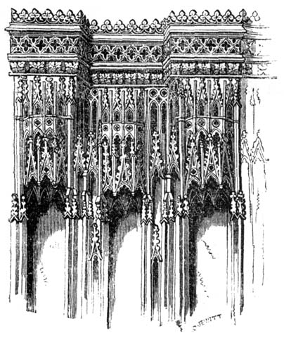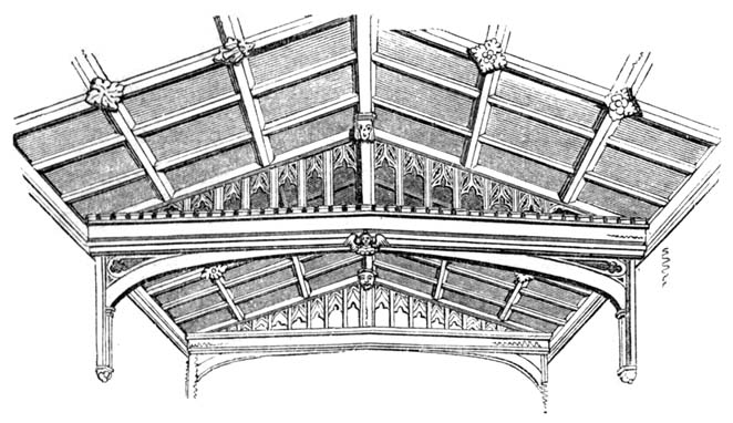 The frequent occurrence of panelled compartments, and the partial change of form in the arches, especially of doorways and windows, which in the latter part of the fifteenth century were often obtusely pointed and mathematically described from four centres, instead of two, as in the more simple pointed arch, and which from the period when this arch began to be prevalent was called the Tudor arch, together with a great profusion of minute ornament, mostly of a description not before in use, are the chief characteristics of the style of the fifteenth[14] century, which by some of the earlier writers was designated as the Florid; though it has since received the more general appellation of the Perpendicular.