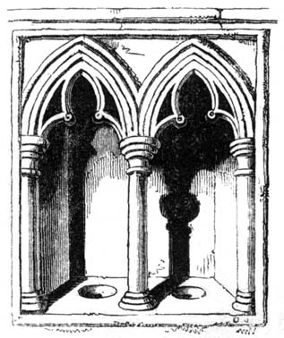 189-* “Il y avoit pour cet effet en chaque piscine, comme en peut voir encore à une infinité d’autels, deux conduits, ou canaux, pour faire écouler l’eau, l’un pour recevoir l’eau qui avoit servi au lavement des mains, l’autre pour celle qui avoit servi au purification ou perfusion du chalice.”—De Vert, Explication des Cérémonies de l’Eglise, vol. iii. p. 193.