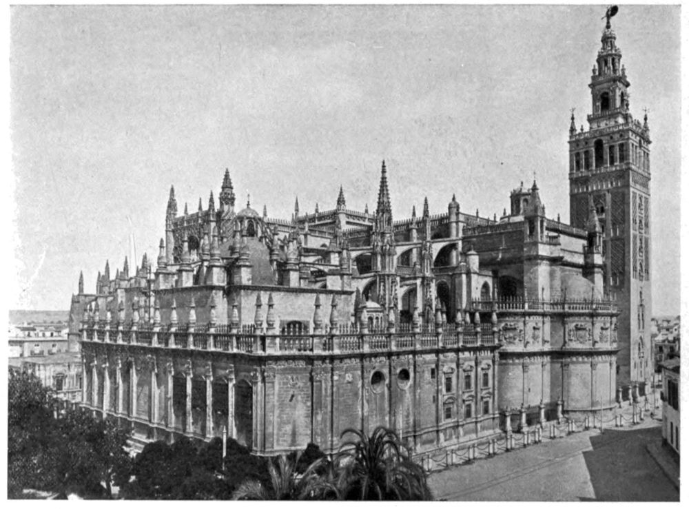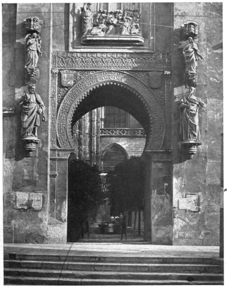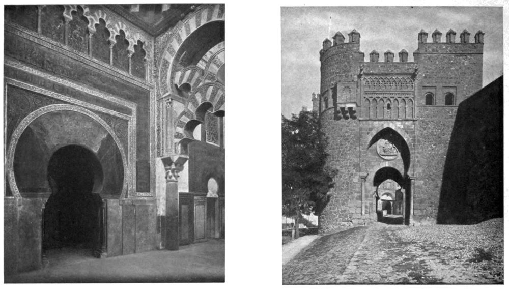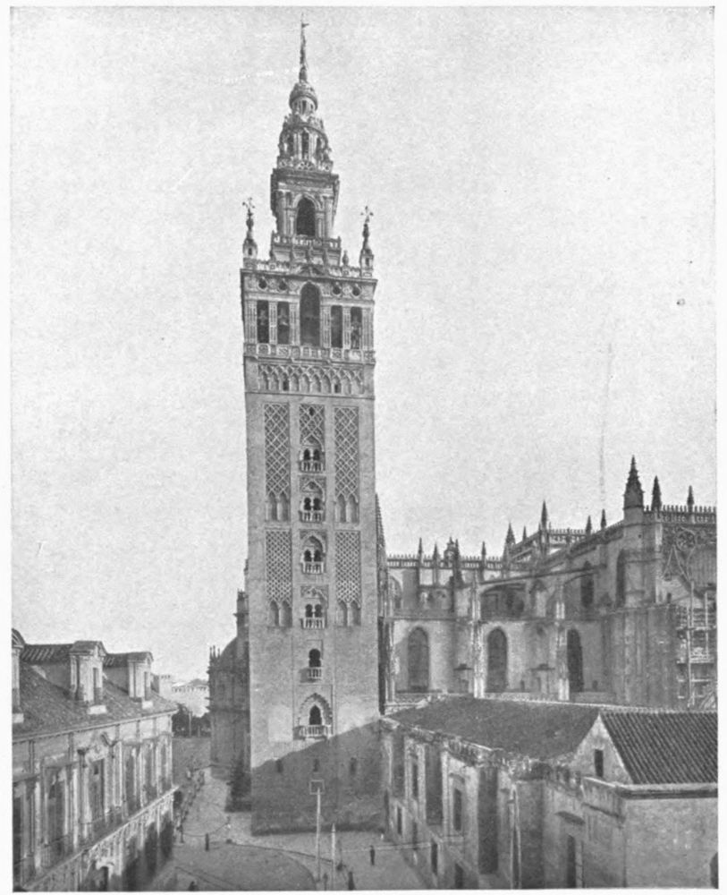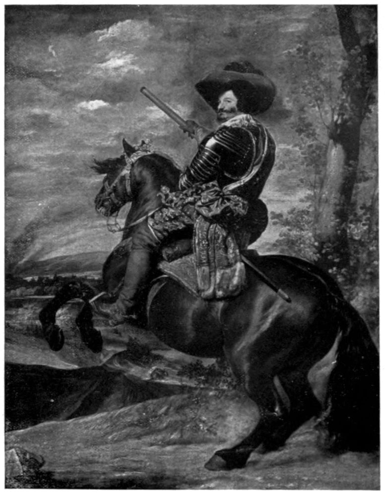 IF you will look at the general map of Spain and Portugal, you will see that the outlines of the Peninsula suggest the head of a man—a broad, square head, with a high forehead and plenty of room for a large brain. The profile, lying sharply cut on the blue Atlantic, shows a crest of disordered hair, a slightly swelling forehead, a long, sensitive, aristocratic nose with a sharply cut nostril, firm lips set close together, a fine chin tapering to a small pointed beard, a slight fulness under the chin; the throat, set well back and surrounded by a blue collar—the Straits of Gibraltar—joins the head to the shoulders—the continent of Africa. The more you look at the face, the more certain you become that it is a familiar one, that it is the face of one you hold dear, till at last complete recognition flashes upon you; it is the face of Don Quixote{2} de la Mancha! Look again; it is a face such as Velasquez painted, not once, but many times; it is the typical Spanish face, proud, high-bred, reserved.