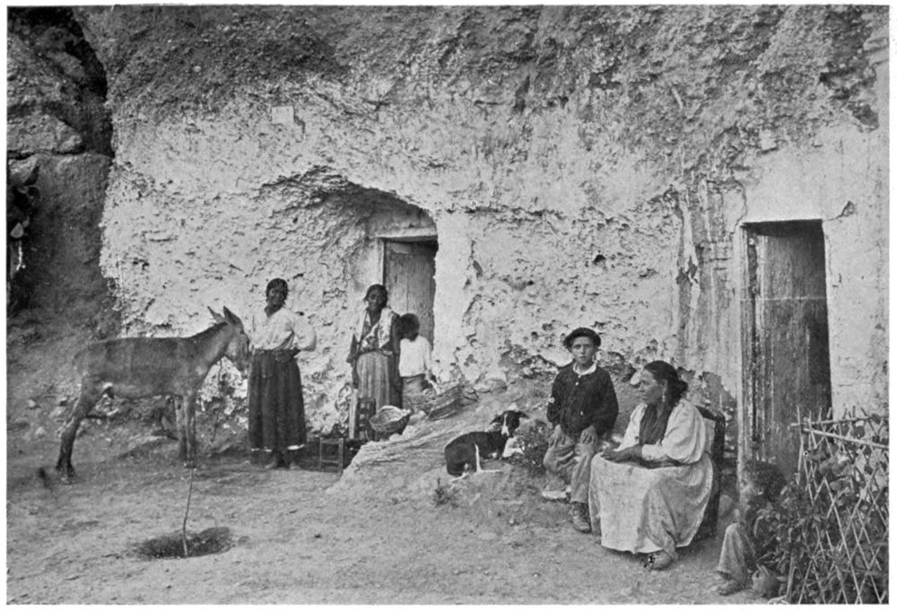 According to Old Scorp, the entrance to St. Michael’s Cave is now one thousand feet above the sea, about two thirds up the face of the mountain. Once upon a time the sea was level with the cave. Had not he and his brother, when they were boys, found fossil shells there, and the remains of a sea beach outside? The entrance was{18} low, he remembered, but inside it was big as the Mosque of Cordova. Its wonderful stalactite columns, fifty feet high, looked like yellow alabaster; there were pointed arches springing from column to column. Lighted up with blue fire, as he had once seen the cave, it was a sight that, man or boy, he had never seen equalled. Except for its being so dark, those who lived here had a fine commodious dwelling. Yes, men have lived, fought, and died in the great cave, and left their flint knives, their stone axes, and their bones to tell the tale. Women have lived and worked there; they left their necklaces, their anklets, their bone needles, their household pottery behind them. There have been feasts here, for amphoræ with traces of wine have been found. There were other caves—oh, many! sea caves and land caves; some “professors” say that the old name Calpe means caved mountain. Whether or not that is true, Scorp, of his own knowledge, assured us that the Rock is full of secret caverns. As if these were not enough, the English are always burrowing and tunnelling. They have dug three tunnels under the Rock; in one they found what is more precious than gold, good water. No, we might not see the tunnels, not even the last of the smaller caves—the secrets of the mountain are jealously guarded.{19}