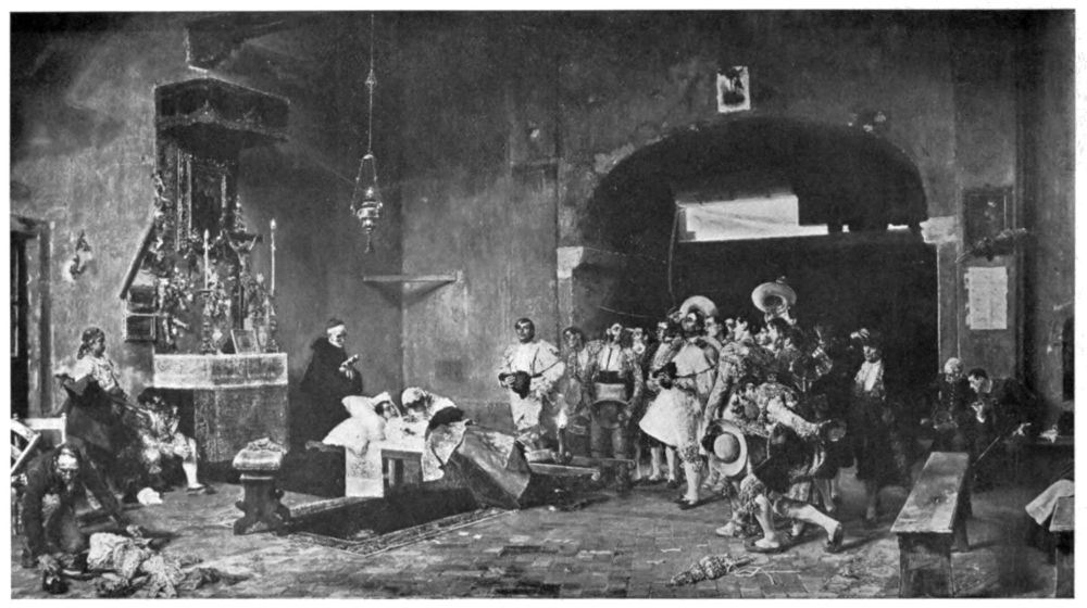 “Natural,” said Villegas, “we are all Sevilliani, born in the same parish, baptised from the same font in the cathedral. When I first came to Madrid—to copy Velasquez—I was just sixteen years old then—Imperiou’s mother was the first dancer in Spain. How is it? Have you forgotten the dance you gave before Queen Isabel at the palace?{407}”