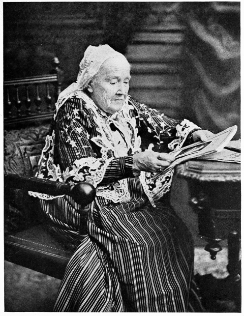 There was a good deal of “taking on” about the lady who had “caught” the old steward, and in order to get it over and done with, the marriage was promptly arranged. It took place in our rooms and I was one of the wedding party. There was another guest, Laura Bridgman, my father’s famous pupil. I can see her white intense face, the sightless eyes hidden by a green silk shade, the delicate fingers—that saw more than some eyes—touching the bridal gifts, hear her plaintive cry of pleasure, like the note of some forest bird, as she felt the large blue cut-glass vase that she and I admired far more than such useful presents as butter knives and pickle forks.