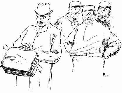 The nearest approach to a gay note, in this concert of groans and grumblings, is struck by some humorous and good-tempered American. He will come and ask you the most impossible questions with an ease and impudence perfectly inimitable. These catechisings are all the more droll because they are done with a naïveté which completely disarms you. The phrase is short, without verb, reduced to its most concise expression. The intonation alone marks the interrogation. Here is a specimen.