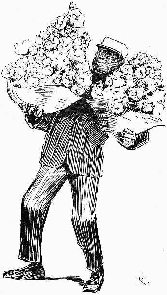 The saloon on board the Teutonic is a mass of floral offerings sent by friends to the passengers. Two huge beautiful baskets of lilies and roses are mine.