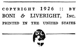 Blanche felt a little scornful and a little inquiring as she listened to him. Who ever heard of saying that people shouldn’t work—what would become of them if they didn’t? Besides, what did he get out of all his reading and this “think-ing” of his? He was a boob in many respects, and in a way she was wasting her time with him. She could have been in the company of men who could show her an actual good time—high-class cabarets and automobile parties, and the best theaters and restaurants. Yet, after she went out with these men for a while she always grew tired of them. They all got down to what they wanted from[31] her, and it became a bald question of taking or rejecting them—you couldn’t “string them along” forever—and they all lacked something that she was unable to put her finger on—something “classy” and aboveboard and decent without being goody-goodish. When she “let them go too far,” under the hilarious urge of liquor, she never felt quite right about it afterwards. She could never rid herself of the feeling that the man had not deserved what he had received and that she had been just another girl on his list. Rosenberg was the one man who came nearest to fulfilling this mysterious lack, but he was deficient in all of the other requisites, and his physical appeal was weak to her.