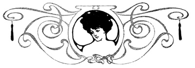 Lucy was not interested in her. He was watching the lady in black who was now standing in the middle of the room. Her elbow touched the shoulder of a young man [11]on her left. The fur tippet slipped again and lay at the young man's feet. He picked it up, and as he handed it to her he stared into her face, and sleeked his little moustache above a furtive, objectionable smile. His companion (Jane's uninteresting man), roused from communion with the spirit of Veuve Cliquot, fixed on the lady a pair of blood-shot eyes in a brutal, wine-dark face.