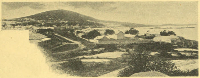 Mr. Broadhurst, to whom I am indebted for all the information relating to the Abrolhos, 35 miles from the mainland, gave me, as a great favour, a copper coin from the Batavia, wrecked there in 1629, also a part of a pair of scissors that have nearly lost their form, and other relics of the past. A very interesting curiosity is a pair of large silver buttons with links, in splendid preservation and very slightly tarnished. The figures on these buttons represent Joseph and Potiphar’s[332] wife. The Abrolhos are the abode of countless millions of birds, principally the noddy and sooty tern, which in the breeding season congregate there in such numbers that the sky is quite obscured by their flight, and everything is in almost total darkness. The group of islands have been leased from the Government since 1883 by Messrs. Broadhurst and McNeill, who command a very large trade in guano. The main stations in the group are Rat, Pelsart, and Gun Islands, on each of which there are commodious managers’ quarters and laboratory, besides kitchen and quarters for 48 hands. No Australian should neglect to see the relics of the wrecks on the Abrolhos that are in the Perth Museum. Mr. Broadhurst showed me a book, printed in the Dutch language, that he accidentally came across on a London bookstall in 1895, being then on a tour and engaged in collecting information concerning early Australia. The book bore the date of 1647, and has since been translated into English by Mr. Siebenhaur, a Dutch gentleman in Perth, and proved to be, strange to say, a complete narrative of the wreck of the Batavia and the massacre of the people, in 1629, at the Abrolhos Islands. The Batavia was the commodore’s ship of a fleet of eleven vessels sent from Amsterdam in 1628 to the East Indies in search of treasure and to form a colony on one of the islands. Storms arose, the commodore’s vessel was separated from the others, and finally got down among the perilous banks of the Abrolhos, where the vessel became a wreck. After much danger, the people, numbering several hundreds—soldiers, sailors, women and children—were landed on two of the islands, several trips having to be made between the ship and the shore before this could be effected. Some water and bread was also got ashore, as well as some cases of treasure, jewels, and gold-laced clothing belonging to the Dutch Government that the commodore was anxious to save. The ship shortly afterwards foundered and the hardships of the seafarers commenced. It was found that there was very little fresh water on the island, so the commodore, Pelsart, and several of the men set off in the sloop, which had been saved,[333] to the mainland to look for water for their fellows. After much difficulty six of them succeeded in landing by swimming, the shore being stony and rocky, and great breakers beating violently against the rocks so that it was not safe to take the sloop in too near. They saw smoke rising, and going towards it, saw four dark figures creeping on their hands and knees, who, on the approach of the sailors, leaped to their feet and fled away at full speed. Each carried a stick, no doubt a boomerang. Around the fires were the bones of birds. The savages were naked, and were the first ever seen on Australian soil by white men. The sailors dug holes, trying to find fresh water, but could find very little, and returned to the ship disconsolate. The commodore then, knowing that by returning to the islands he could do no good for his fellow sufferers, determined to return to Batavia for assistance. On arrival there he obtained speedy help from the Government, and provided with all necessaries and a good crew, at once set out again for the Abrolhos to succour the shipwrecked people. On arrival there they saw, close to where they had been wrecked, smoke from several fires, and were much rejoiced, hoping to find all or most of the poor people alive. Having cast anchor, the commodore, taking with him a cask of water, bread and wine, went in his boat to the highest island, but on arrival there found no one, at which he was much astonished. Jumping ashore, they saw a little boat coming round the northern point with four men rowing; one of them jumped ashore and welcomed the commodore, but begged him to return to the ship, as there was a party of miscreants who intended to seize the vessel. He then told the terrible story of the massacre. These miscreants had murdered 120 people on the island, now called Pelsart Island, or “Batavia’s Churchyard.” The commodore then sorrowfully returned to the ship. The man who told the commodore all this was named Webbey Hayes, and he with forty others had tried their best to save their comrades, and were then on what they called Long Island. The commodore took some boats and men and brought them away, arming them with muskets. With these he[334] proceeded to Batavia’s Churchyard and captured the mutineers. They found them all dressed in the beautiful clothes trimmed with gold lace belonging to the Government, and jewels were scattered about in all directions. The mutineers were divested of their gay clothes, put in irons and conveyed to Seal Island, to remain there till they should be tried, which was afterwards done, and they were then executed for their crimes. This is a very short and crude synopsis of the interesting translation of the Dutch book of which I have spoken, but may serve to give some idea of the Abrolhos. The many curios of this time that are spoken of on page 51 are well worth seeing. Previous to this, in 1540, Portuguese vessels had been driven on to the coasts of the Great South Land, as it was called. Houtmann, a Dutchman who had served with the Portuguese, had sighted the cluster of rocky islets and called them Abrolhos, a contraction of the Portuguese “Abro vos olhos” (“Keep your eyes open”). In far-back ages Chinese junks used to sail down to the Gulf of Carpentaria, and the natives of that part of Austra