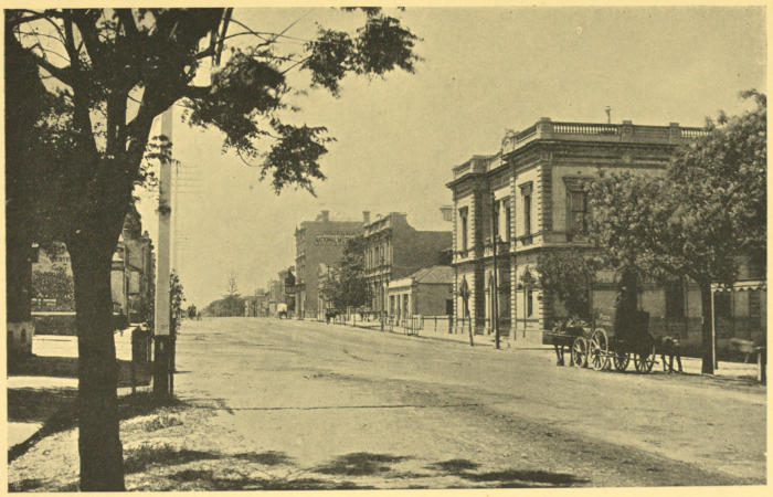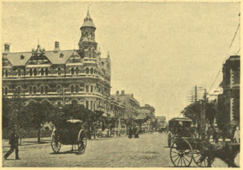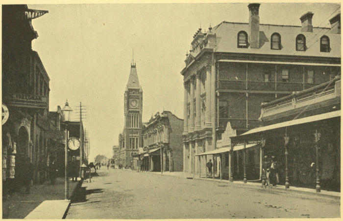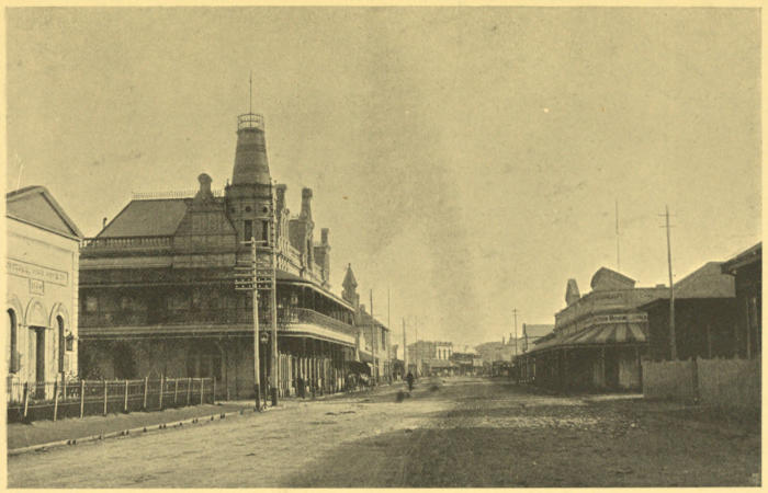 At last I saw the lights of Cue. Electric lights in the streets, horses and carts, the shrill whistle of the railway engine, boys calling out the evening papers, and the stopping of the coach to deliver the mails at the brilliantly lighted and splendid post-office, told me that I had emerged from the “back-blocks” and was once more nearing the metropolis.