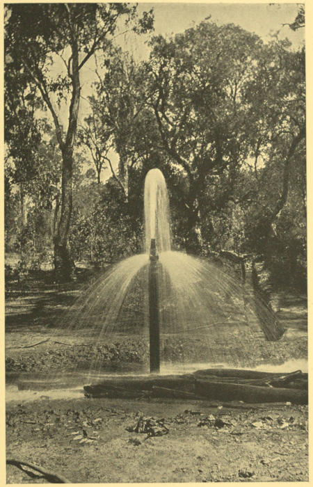The view from the top of the lighthouse, where we stopped on the way back from a river picnic, is very grand. The rocky Abrolhos, 35 miles away, with the surrounding agricultural country, Champion Bay, and, farther out still, the grand rolling Indian Ocean, make up a most impressive scene. The lighthouse has a revolving white light, brilliantly flashing every 40 seconds, and visible for 16 miles; two other lights, lower down, showing red rays, visible from the north and south. Another day I drove to Greenough Flats, a level and fertile plain, with many fine crops, principally wheat, under cultivation. These flats were, no doubt, in former days vast lagoons, which accounts for the unlimited supply of good underground water. The grass is very nutritious, and the sheep and cattle[331] looked fat. At Minchooka, Mr. Redhead’s station, the stock was looking exceptionally well, and a fine crop of wheat returned 26 bushels per acre from 11 acres. Mr. T. McGuiness, of Greenough Back Flats, lately had a peculiar experience while cleaning out his well, which is 96 feet deep, and was dry. In the hope of obtaining a fresh supply, Mr. McGuiness sank the well 13 feet deeper, and, when driving down his bar, struck water, which spouted up so quickly and with such a rush that he had hardly time to escape drowning; the water rose 30 feet in a very short space of time.