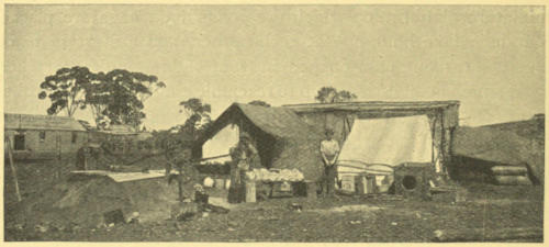 There are many tidy houses in the little township; one Hessian camp, containing three separate rooms, was most tastefully arranged with pretty art-muslin and cretonne, a nice carpet on the ground, and cane furniture beautifully draped. The bedroom was quite elegant, and the kitchen had cocoanut matting on the ground; there were, as usual, no floors. A bright Peerless Cooker stove and spotlessly white dresser and crockery finished as natty a little home as a man and woman could wish for. The men out here all work their own claims, and are very comfortably off.