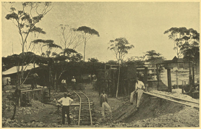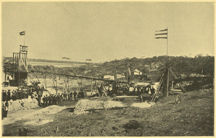 We were now in the Murchison district. Nannine is a nice little place, and everything seemed to be flourishing. The people form a very happy, lively community. Several good buildings adorn the town, and I considered myself fortunate in getting very comfortable quarters, for I was really tired after my journey and late camping-out experiences. It was delightful to rest on a nice soft bed and to have my breakfast brought me in the morning. There are two good hotels at Nannine, which do a splendid business. There are over 80 mines in the district—the first in which gold was discovered in Western Australia. This first discovery dates from 1854, when Robert Austin was sent by Governor Fitzgerald to explore the country in the Gascoyne district above Peak Hill for agricultural and pastoral land for settlement. Mr. Austin was accompanied by the sons of some of the early settlers, and the little band of explorers underwent many hardships. Most of their horses were poisoned by the Bri-gastrolobium plant, and the party had to travel on foot for[304] many weary months. It was owing to this circumstance that the gold discovery was made, for while reconnoitring for grass and water Mr. Austin came across some likely looking stone, which he broke, and found it contained gold. The only prospecting tools available (except a tomahawk, a small hatchet always carried by explorers and prospectors), being a knife and a pannikin, much progress could not be made. On Mr. Austin’s return to Perth from the expedition he informed the Government, who did not think it worth while to make further inquiries. Had they done so, the colony’s prosperity might have dated 35 years earlier than it has done, as Mr. Austin correctly described the auriferous nature of the belt of country around Mount Magnet, Lake Austin, and Mount Kenneth, and also predicted that the Murchison would become one of the greatest goldfields in the world. The little party were the first white men who ever set foot in that part of the colony, and I do not think that their efforts were ever recognised. Mr. Austin is now a very old gentleman, and last year was mining surveyor at the Mines Department, Hodgkinson Goldfields, Queensland, from which place he wrote to the papers in Perth asking that his claims as the first discoverer of gold should be recognised by the present Parliament, and giving interesting particulars of his travels. In 1856 gold was discovered at Kojânup, but little attention was paid to gold in Western Australia in those days. It was not until 1884 that Mr. Hardman, the Government geologist, discovered rich gold at Kimberley in the far north of Western Australia, and this was followed in 1887 by the find of gold at Mugakine while a man was digging a well. Golden Valley and Southern Cross followed, and an era of prosperity for the colony opened which I hope will never be closed.