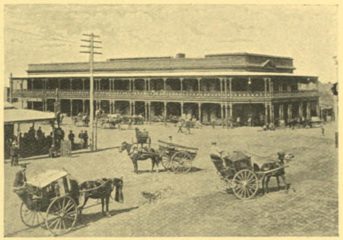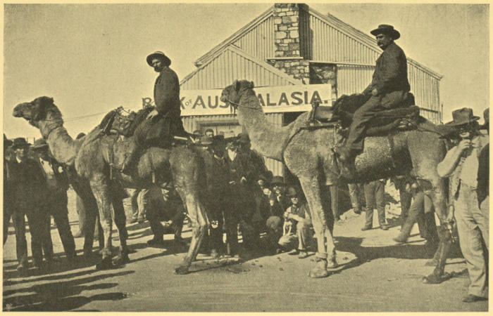 At last the train made its appearance, and I took my seat and went to Mount Magnet (not to be confused with Mount Margaret, which is in quite a different part of the country), about 32 miles farther on. On arrival there the railway station was so crowded that I could scarcely get out. There were about 300 young men of all sorts and sizes, and with such jolly smiling faces that I began to feel quite hilarious myself. They turned out to be the successful footballers just returned from a match at Cue. Several buggies and horses were waiting at the station, and I had no difficulty in being conveyed to an hotel, which bore the significant name of “The Oasis.”